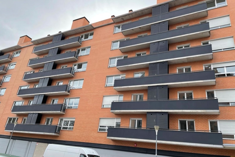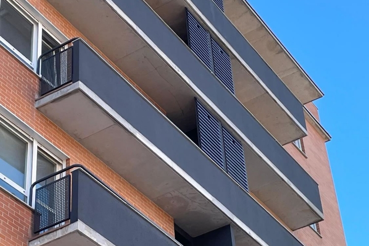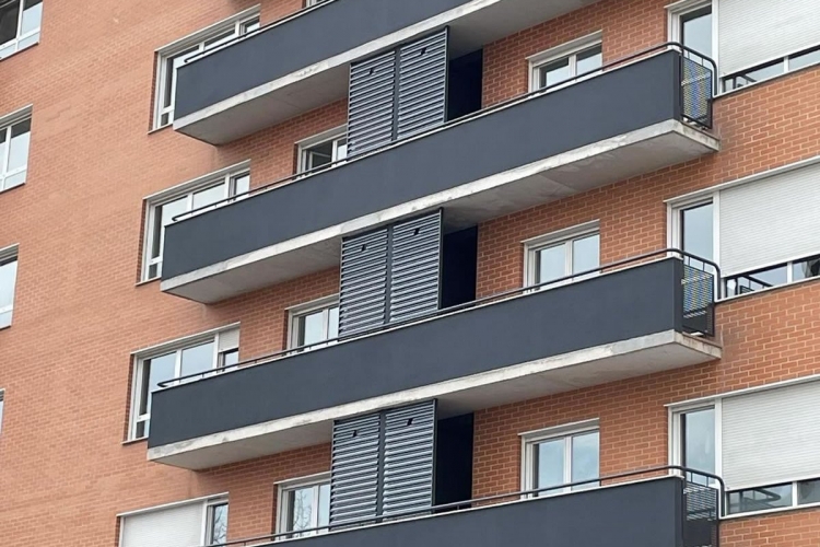 Edificio viviendas en el barrio de San Jorge (Pamplona). Decohogar realizó la instalación de celosías en tendederos con lamas de aluminio horizontales