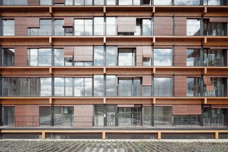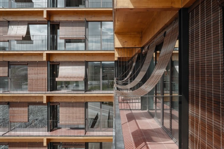 Edificio de 39 Viviendas de VPO Alquiler, Passivhaus. Construido con estructura mixta de madera y hormigón, mediante técnicas de construcción industrializada.