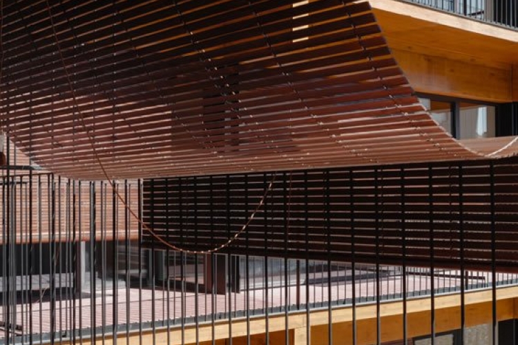 Decohogar realizó la instalación de los elementos de control solar del edificio. Persianas de aluminio motorizadas y Persianas alicantinas de madera enrollables.